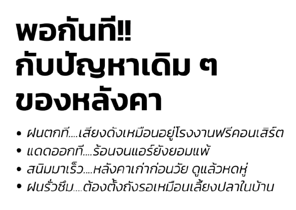- ปัญหา : หลังคาเก่า รั่วซึม และบ้านร้อนจัด
